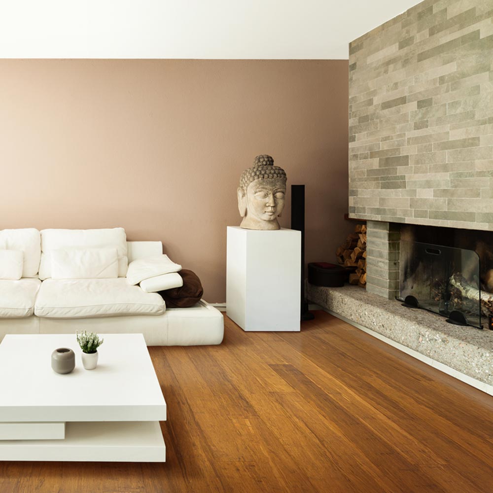 (二)、竹子健康向上、堅韌挺拔,能夠傳遞給居住者積極的生活態(tài)度,因此在建筑和園林造景中經(jīng)常被應(yīng)用。很多人指出,刮去竹青的竹子表面呈黃黃的顏色,讓人感覺很溫暖。以竹材做墻面裝飾,效果一點兒不比傳統(tǒng)的木飾面差。就材質(zhì)自身的穩(wěn)定性而言,竹材也比木材強(qiáng)。專業(yè)的室外竹質(zhì)鋪裝材料除了能夠保留竹子本身的表面肌理效果外,其嚴(yán)格的防腐加工工序也令竹材的性能更為穩(wěn)定,能有效延長戶外地板的使用壽命,整體效果更好。